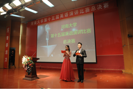第十五届英语演讲比赛主持人生命科学学院路冰冰和临床医学院叶振邦