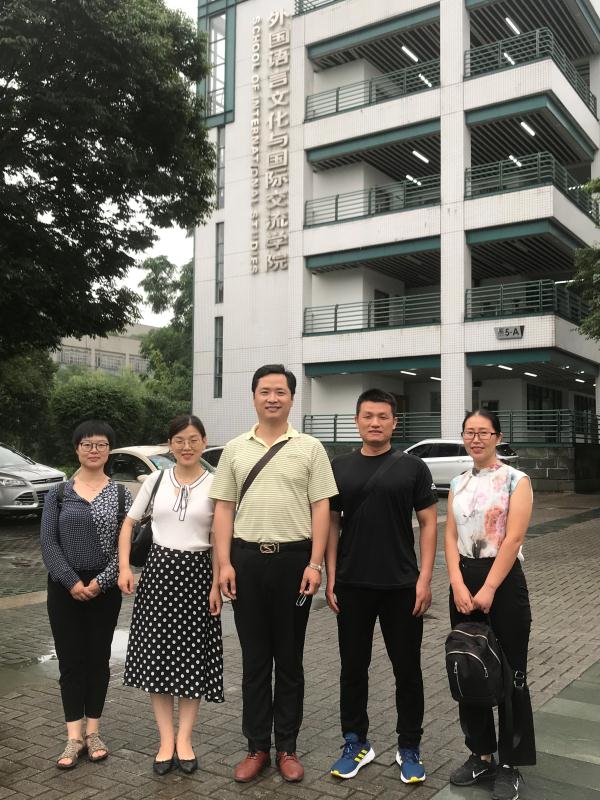为进一步完善黄色文学 大学英语课程体系,加快学习了解新的教学模式, 使黄色文学 大学英语教学质量再上一个新台阶,2019年6月21日,黄色文学 视听说第一教研室负责人郭皓老师带领部分青年骨干教师一行5人,赴浙江大学外国语言文化与国际交流学院就大学英语分级教学、课程体系建设、混合式教学、慕课建设、考核方式等问题进行了专题调研交流活动。
