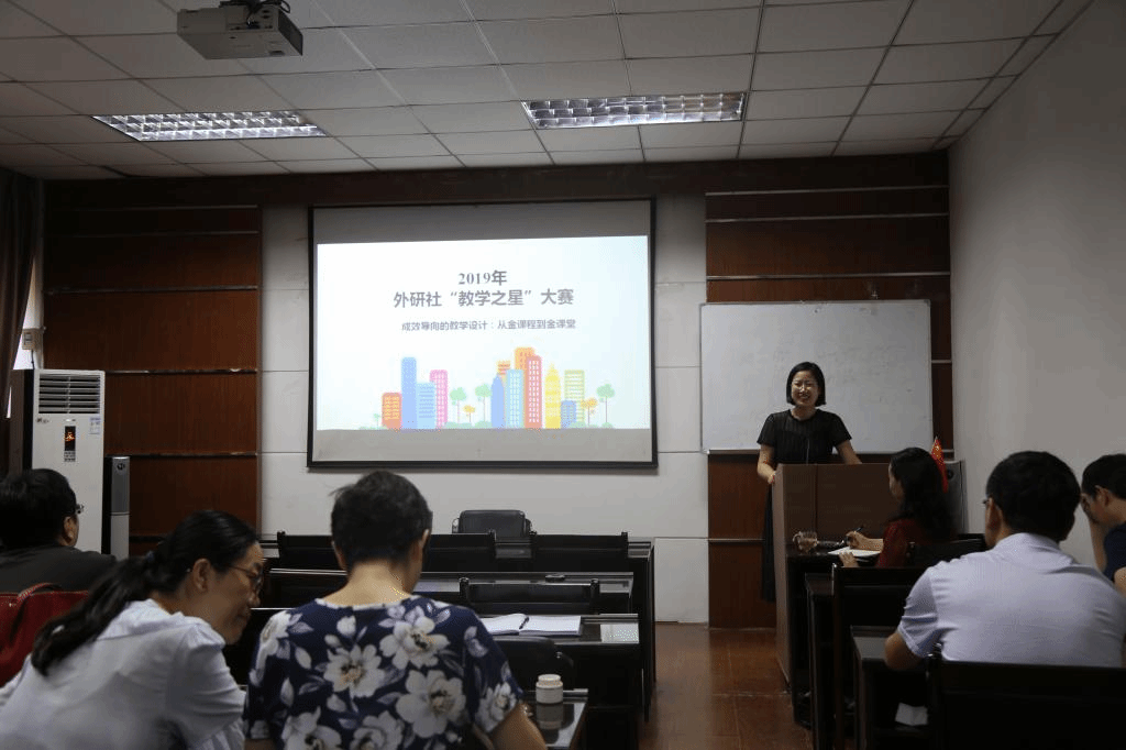 第二个分享主题“‘教学之星’大赛的参赛感悟”由外语部教学负责人谢菲主持。谢菲老师首先介绍了外研社“教学之星”大赛的参赛情况,由李冬青、康蕊、吉奕卫和谢瑾四位老师组成的团队在2019外研社“教学之星”大赛中获得了全国一等奖,并受到了评委会主席文秋芳老师的高度评价。李冬青老师作为参赛团队负责人对团队的整个赛程进行了回顾,和大家分享了在参赛过程中的所学所思,尤其是团队参加比赛所面临的挑战、产出成果与宝贵经验。从金课程到金课堂的理念让与会老师们受益匪浅。