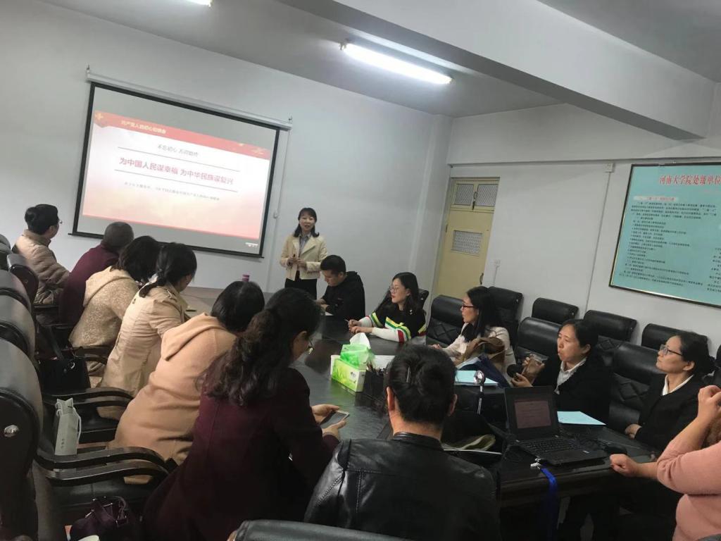 为扎实推进“不忘初心、牢记使命”主题教育,10月17日下午,黄色文学 第二党支部书记张聪沛同志为支部全体党员上了一堂以“不忘育人初心、牢记教师使命”为主题的党课。