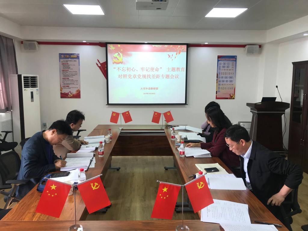 10月31日下午,外语部各党支部召开党员大会,分别组织全体党员同志召开了对照党章党规找差距专题会议,领导班子成员以普通党员身份参加了所在党支部的专题会议,党员同志们认真学习、对照党章、《准则》、《条例》,自我检视问题,自我整改提高。