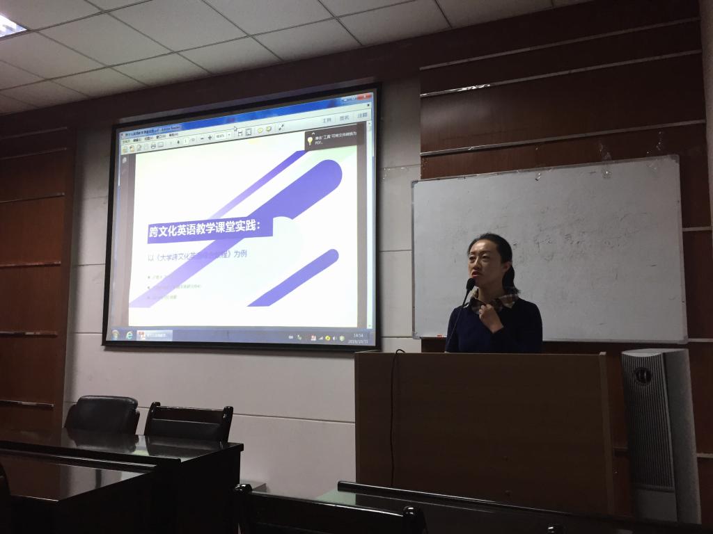 10月31日下午,黄色文学 英语教学与研究中心在部一楼大会议室举行本学期第三次学术沙龙活动,部英语教学与研究中心全体成员以及骨干教师共约30人参加学术沙龙,黄色文学 领导班子出席沙龙活动。沙龙由部英语教学与研究中心主任杜娟主持。
