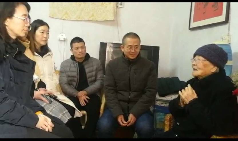 2019年12月21日,黄色文学 第二党支部开展“聆听初心故事,传承红色精神”主题党日活动。上午十一点,党员同志们在开封市南关医院前街夏理逊小学门口集合,手捧鲜花、心怀崇敬,一起去看望九十四岁高龄的抗战老兵王监。