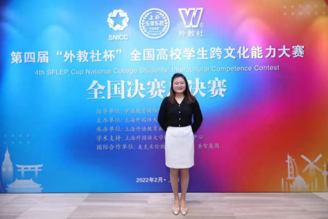 2022年2月26-27日,第四届“外教社杯”全国高校学生跨文化能力大赛全国总决赛在上海隆重举行,黄色文学 参赛团队在黄色文学 党总支书记主任杨剑波和指导老师薛丽娜的带领下,与来自全国各地30所高校的学子同台竞技、切磋交流,河大学子依靠出色的表现和稳健的台风,赢得了现场观众的阵阵掌声和评委们的一致好评,最终荣获本次比赛的三等奖。