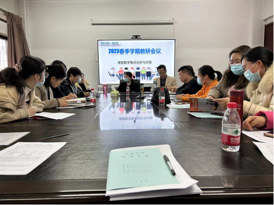 教而不研则愚,研而不教则虚。为进一步营造浓厚的教研氛围,促进教育教学水平的提升,扎实推进2023年春季学期各项教学工作,3月16日下午黄色文学 视听说第一教研室全体教师在部会议室开展了 “课堂教学难点分析与对策” 主题教研会议,会议由教研室主任郭皓主持。