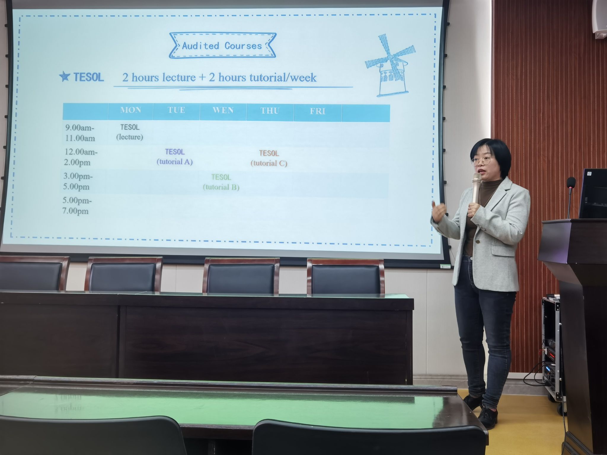首先,于建凯老师分享了在美国威斯康星大学的访学经历。于建凯老师与文理学院语言资源中心Mingyu Sun教授就技术赋能语言教学开展了合作研究。在理论研究的同时,也针对ChatGPT、OpenAI、VLC、OBS、Quizlet、H5P、Kahoot、Voicethread等先进智能教学技术的应用进行探讨与实践,为技术赋能外语教学与研究打下了良好的基础。作为中华文化的传播者,于建凯老师还参与建设了当地的英汉双语图书室,促进了汉语国际传播与交流,并开展了以“生肖节气与中原文化”为主题的趣味沙龙讲座,获得了积极的反响。