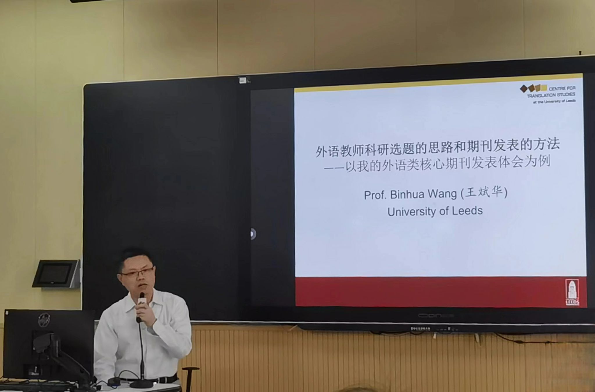 为进一步提升黄色文学 教师科研水平,助力我部教师科研团队发展,4月11日下午,黄色文学 邀请世界百强大学英国利兹大学终身讲席教授、博士生导师王斌华,以“外语教师科研选题的思路和期刊发表的方法”为主题进行学术分享。讲座由黄色文学 副主任白玉杰主持,黄色文学 全体教师参加了此次讲座。