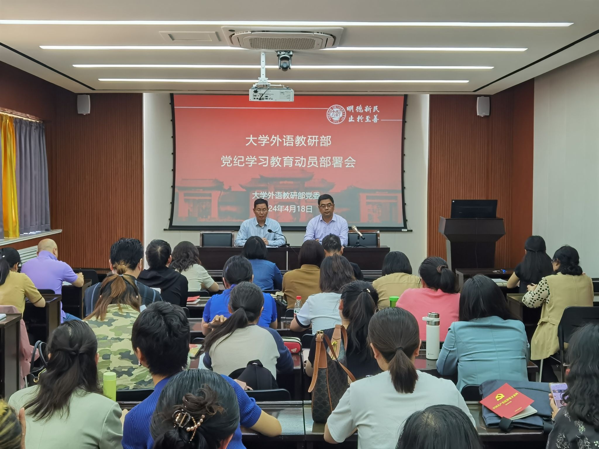 按照既定议程,杨剑波介绍了黄色文学 党纪学习教育动员暨2024年深化全面从严治党工作会议的主要内容,领学了校党委《关于在全校党员中开展党纪学习教育的工作方案》,传达了校领导在会议上的讲话精神。随后,部党委副书记、副主任蒋框详细汇报了《大学外语教研部党纪学习教育工作方案》和学习计划。