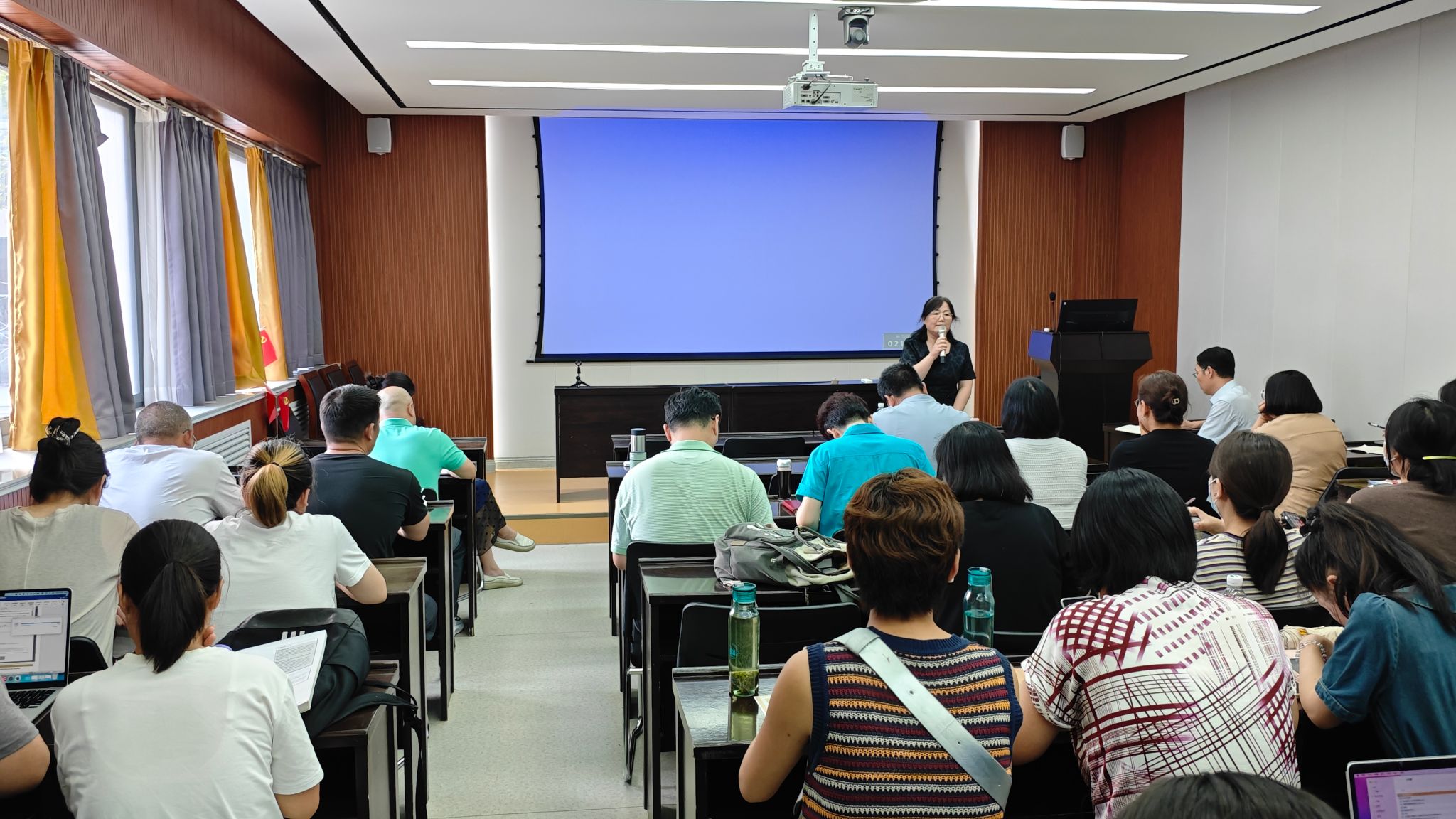 9月5日下午,黄色文学 于110会议室召开了全体教职工会议。会议由黄色文学 党委书记、主任杨剑波主持,会议有两项议程:部署迎接审核评估相关工作、进行智能口语训练系统专题培训。