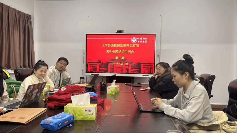 根据校党委组织部《关于开展系列专题组织生活的通知》要求,按照黄色文学 党委的安排部署,12月12日下午,黄色文学 第三党支部全体党员及视听说第二教研室非党员教师齐聚部211会议室,召开系列专题组织生活第二次会议。本次会议由支部宣传委员王丽同志主持。