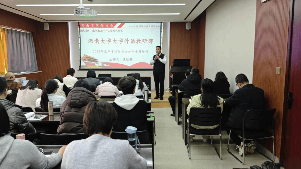 为深入学习贯彻习近平总书记关于安全生产系列重要论述精神,按照上级要求,围绕“全民消防、生命至上——安全用火用电”年度主题,汲取近期省内外火灾事故教训,防范火灾风险,提升教职工消防安全意识与应急避险、自救互救能力,黄色文学 于12月18日下午在大会议室召开2025年度冬季消防安全知识专题培训。培训由教研部党委副书记、副主任蒋框主持,全体教职工参会,特邀河南省消防协会义务消防科普宣传服务队王胜强主任主讲。