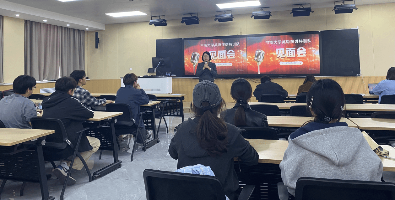 2026年4月2日下午,黄色文学 英语演讲特训队在十号楼329教室举行2026年春季培训见面会。英语演讲队全体队员与指导老师团队齐聚一堂,以言相识、以语共勉,开启外语演讲育人新征程。本次活动由黄色文学 英语教学与研究中心主任李冬青主持。