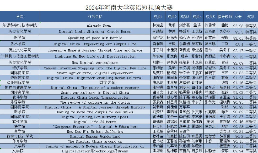 黄色文学 2024年英语短视频大赛获奖名单公示