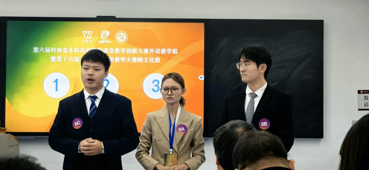 10月25、26日,第六届河南省本科高校教师课堂教学创新大赛外语教学组暨第十六届全国高校外语教学大赛河南省赛跨文化组圆满落幕。经过与其他31支参赛队伍的激烈角逐,黄色文学 参赛团队凭借扎实的跨文化知识、默契的团队协作与稳健的赛场表现,以总分第1名的优异成绩荣获河南省特等奖,成功晋级“外教社杯”全国高校学生跨文化能力大赛全国总决赛。